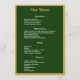 Menu Elégant cadre Gold Script sur Green Mariage Dîner