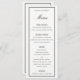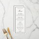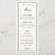 Elégant Menu Mariage, carte plate avec titre modifiable et texte sur l'avant et l'arrière. Bordure noire simple et disposition du texte. Si le côté arrière n'est pas nécessaire customisez et supprimez tout.