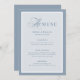 These elegant, luxe wedding menu cards feature a dusty blue border and a lighter blue and white design. There is a mix of classic text and modern calligraphy for a classy and minimalist design perfect for your timeless, formal wedding.