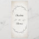 Une élégante carte de menu mariage conçue avec des feuilles délicats, et du texte en écriture noire. Design élégant et moderne, aux accents doux. Pour personnaliser, il suffit d'insérer vos détails dans notre modèle facile, en remplaçant le texte de l'exemple : Sélection d'amuse-gueule, Sélection entre et Sélection de dessert, par vos éléments de menu à l'avant ; et les Prénoms de la mariée et de la chambre à l'arrière. N'oubliez pas de consulter l'ensemble de la collection de Mariages de script Feuille élégant.