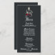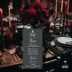 Menu de mariage | Écrit en vieil anglais calligraphie gothique - ce menu de dîner goth mariage est sûr de wow la foule- texte blanc sur arrière - plan de charbon de bois avec un étonnant affichage gothique de bougie victorienne avec rose crammson
