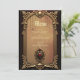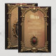 Élégant luxueux emblème de coeur.Le design présente un cadre doré orné et voûté contre un arrière - plan marron dégradé. Le cadre est très détaillé avec des fioritures de style baroque. En haut de l'arche sont accrochées de délicates chaînes dorées avec des pendentifs en larme. Au centre inférieur, un cadre doré plus petit, de style similaire, présente un emblème de coeur rouge flanqué de serpents ailés. L'ambiance générale est luxueuse et décorative.