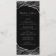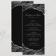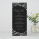 Offrez à vos invités ce menu de mariage simple et élégant avec des tons classiques de noir, blanc et gris agate avec des veines métalliques en feuille d'argent. Customisez-le avec vos noms, date du mariage et options de menu.