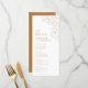 Illustration délicate et élégante de fleur dessinée à la main et détails de typographie de script moderne, en couleur de chute dorée, simple et romantique. De superbes menus à fleurs mariage pour mariage rustique moderne, mariage champêtre et mariage boho simple en automne et en hiver. Entièrement personnalisable avec n'importe quelle couleur pour correspondre à votre thème mariage. Voir toutes les pièces correspondantes dans la collection.