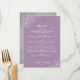 Menu Élégant Mariage de dentelle argenté Lavande violet