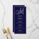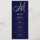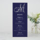 Elegant Navy Blue, Grey and White Simple Elegant Wedding Menu avec monogramme personnalisé ou noms de mariée et de mariée pour créer votre propre logo mariage unique. Ajoutez les éléments du menu mariage à l'avant de la carte. Vous pouvez customiser pleinement la couleur de l'arrière - plan, le style de police et ajouter du texte supplémentaire au dos de la carte. Il suffit d'utiliser l'option "customiser". Elke Clarke©