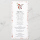Elégante carte de menu Mariage Floral Eucalyptus pour vos occasions spéciales ! Le design s'accorde avec le reste de la collection Floral Dance. Bouquet floral d'aquarelle de fleurs rouges et violettes à feuilles vert foncé encadre le haut de votre carte détails (personnalisez avec vos détails sur les entrées, entrées et desserts en lettrage élégant), inverser la carte pour révéler un arrière - plan motif rose pâle en terre cuite.
