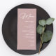 Le "Modern Mauve Mariage Menu" est parfait pour un mariage rose et poussiéreux, mettant en valeur tout thème de mariage rose poussiéreux avec son design élégant. Ce menu vient compléter un mariage mauve, s'intégrant parfaitement dans un thème mariage mauve ou un mariage mauve foncé. Idéal pour un thème mariage bordeaux, il combine à merveille des éléments bordeaux et poussiéreux de la mariage rose, une mariage bordeaux et rougeâtre, un rose poussiéreux et un mariage vert moelleux. Parfait pour un mariage rose et bordeaux, c'est aussi un bon choix pour un mariage moody d'automne.