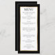 Elégant menu personnalisé mariage noir, blanc et or. Éléments correspondants disponibles.