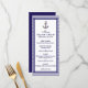 Customisez cette élégante carte menu marine Mariage Nautique rayures de menu design. Motif à rayures bleu marine et blanc avec ancre de navire de marine au sommet et bordure en corde bleue et blanche.Le motif rayé bleu et blanc marine est également placé à l'arrière. Un modèle pour une personnalisation facile de vos détails mariages tels que les noms de mariée et de mariée ainsi que la date du mariage.Même design est disponible dans d'autres fournitures fixes mariages correspondantes pour porter le thème mariage nautique dans le style.
