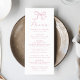 Ajoutez une touche romantique et raffinée à votre réception de mariage avec ce menu rose mariage de arc rose. Le design se compose d'un arc délicat dessiné à la main dans une teinte rose chaleureuse, associé à "Menu" écrit en calligraphie élégante au sommet. Personnalisez-le avec vos noms, votre date de mariage et vos sélections de menu pour correspondre à votre jour spécial. Ce ton rose offre une pop de couleur sophistiquée, ce qui en fait l'endroit idéal pour les mariages romantiques modernes, les thèmes d'inspiration vintage, ou les célébrations avec de riches palettes florales.