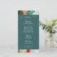 Wedding menu | Vibrant alcohol ink art in dark teal, sea green, and terracotta, perfect for a stylish wedding invite. Abstract design blends elegant dark tones with refreshing greens and warm terracotta, creating a modern and eye-catching visual.