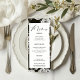 Menu Élégant Noir & Blanc Floral Custom Wedding Diner