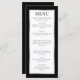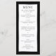 Elégant menu personnalisé mariage noir, blanc et argent.