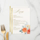 Menu Élégant or Blush Floral Script Mariage