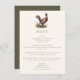 Chasse carte de menu à thème avec une illustration de faisan et une typographie élégante, fond vert olive foncé et texte personnalisé. Parfait pour un dîner de campagne, un dîner de répétition de mariage élégant, un dîner de chasse, une fête de retraite de chasse ou une fête d'anniversaire de chasse.