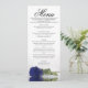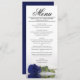 Ce beau menu ajoutera un peu de style à votre réception de mariage. Il présente un design magnifique et romantique avec un seul rose bleu marine et profond posé sur son côté, se reflétant dans un bassin d'eau avec vagues et ondulations. Il y a de l'espace pour les noms du couple et la date du mariage, et le texte est entièrement personnalisable.