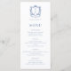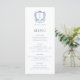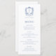 Menu Élégant Rose Bleu Monogram Crest Mariage