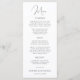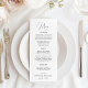 Cette carte de menu mariage élève votre menu dans une oeuvre d'art. Le script de calligraphie moderne ajoute une touche de sophistication, tandis que la disposition propre en noir et blanc présente vos cours guidés d'une manière visuellement attrayante. Cette carte de menu vous laissera une impression durable.