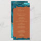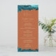 Ce menu mariage moderne et élégant présente des bordures de haut et de bas de l'agate d'aquarelle bleue turquoise, égayée de fausse parties scintillant dorée. Le texte apparaît dans une élégante écriture manuscrite de couleur or, des polices italique et cuivre sur un arrière - plan orange brûlé ou rouille. La conception de l'agate est répétée à l'envers.