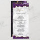 Ce menu mariage moderne et élégant présente des bordures de haut et de bas d'agate d'aquarelle violette parée de parties scintillant en faux or. Le texte apparaît dans un élégant script d'écriture manuscrite de couleur or et des polices en italique et en cuivre noir sur un arrière - plan en marbre gris et blanc. La conception de l'agate est répétée à l'envers.