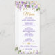 Offrez à vos invités ce design élégant de menu de mariage avec script moderne, texte bleu marine et de beaux roses d'aquarelle violet, lavande et ivoire. Customisez-le avec vos noms, date du mariage et options de menu. Les mots "Bon Appétit" sont au verso. Contactez-moi si vous avez besoin d'aide ou d'une commande personnalisée.