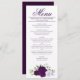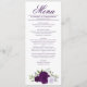 Ce beau menu ajoutera un peu de style à votre réception de mariage. Il présente un beau design boho chic floral avec un ensemble de roses d'aquarelle peints à la main dans des tons de violet poussiéreux, de prune et de lavande, ainsi que des sprigs de feuilles d'eucalyptus et de verdure du jardin. Il y a de l'espace pour les noms du couple et la date du mariage, et le texte est entièrement personnalisable.