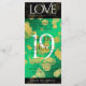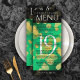 Ajoutez de la sophistication aux célébrations du 19ème anniversaire du mariage de jade avec ce menu du dîner, qui comprend des confettis hexagonal et en lettrage doré sur arrière - plans vert et noir de jade moucheté. Customisez avec le nom du couple, la date du mariage, les détails du lieu, les menus et les messages de félicitations. Design © W.H. Sim. Voir plus sur zazzle.com/expressionsoccasions