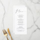 Cette carte mariage de calligraphie moderne et sophistiquée est parfaite pour un dîner mariage sophistiqué. Le design minimaliste simple présente une élégante typographie en noir sur un arrière - plan blanc. Le script en combinaison avec la police sans serif donne un look propre et simple. Outre les options de couleurs que vous voyez ici cette carte de menu mariage pour le dîner est entièrement personnalisable. Vous pouvez même changer la couleur du titre de calligraphie. Ce menu peut également être utilisé pour votre dîner de répétition, réception de mariage ou tout autre événement. Il suffit de supprimer les noms et la date au verso de la carte de menu pour la rendre adaptée à un événement non-mariage.