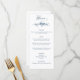 Le design classique chic comprend des graphismes de texte personnalisés dans une police de script fluide et des champs de texte modifiables pour les détails de votre menu de célébration avec élégance gravée de couleur bleue florale. Le dos est orné d'une couronne florale complémentaire encerclant votre monogramme. Magasinez les produits correspondants dans Collections au magasin Grafixmaman.