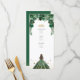 Ajoutez une touche de sophistication à votre célébration avec cette élégante carte de menu quinceañera vert émeraude. Doté d'une princesse royale dans une robe verte pétillante, de papillons dorés et de roses d'aquarelle luxuriants, ce menu est parfait pour mettre en valeur vos entrées, plats principaux et desserts dans le style. Personnalisez facilement vos détails d'événement pour un affichage de table étonnant qui complète votre décor de coing.