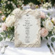 Elevate your black-tie reception with this sophisticated design, featuring a stunning faux plaster relief effect and elegant ivory tones for a timeless look.This design features a masterful visual simulation of carved plaster and antique stone. The artwork depicts a sophisticated border of white roses and swirling baroque vines, rendered with soft dimensional shading to create a monochromatic, tone-on-tone ivory and cream palette. A delicate serving cloche icon sits above the formal serif typography and handwritten calligraphy accents.This is a flat printed image with a faux sculpted effect, not actual raised material or embossed paper.