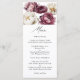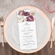 Un menu ultra-féminin qui capte l'essence de l'élégance rustique avec son abondant étalage de pivoines et de roses en harmonisant le bordeaux profond, la prune, le rose poussiéreux et le blanc d'ivoire doux. Les éléments botaniques féminins se mélangent comme dans un somptueux bouquet de jardin et font que divertir vos invités est si agréable ! Le texte manuscrit de script moderne décrit "Menu" dans un style sophistiqué. Personnalisez le texte du menu avec les éléments de menu sélectionnés. Si vous devez ajouter ou supprimer des lignes de texte ou déplacer le texte sur la carte de menu, sélectionnez "modifier à l'aide de l'outil de conception" au bas du modèle de personnalisation. Ceci ouvrira l'éditeur complet et vous permettra de faire des modifications supplémentaires.