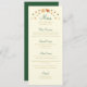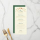 Le romantisme de l'automne est capturé dans ce menu mariage. Les feuilles d'automne descendent en cascade la carte dans un flurry de rouges, d'oranges et d'or contre un arrière - plan crème. Les feuilles de chêne et d'érable sont en vedette. Un vert de forêt profonde ajoute du contraste à l'arrière et déclenche un monogramme personnalisable. L'automne est dans l'air avec ce menu élégant.