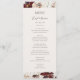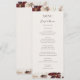 Ce fleur sauvage en cuivre bordeaux | menu de dîner mariage beige est parfait pour votre classique rouille boho rustique, blanc, marsala réception de mariage. Le design présente une couronne bohème ou un bouquet de fleurs sauvages d'aquarelle moderne violet, rouge, gris et rose vif, ainsi que des oranges brûlées et de la verdure dorée. Dans la conception sont présentés des pavots et de l'orge. Le design est idéal pour un mariage de jardin de printemps d'automne ou d'automne simple et minimal. Veuillez trouver d'autres articles de papeterie mariage correspondants ou coordonnés dans le reste de cette collection.