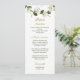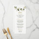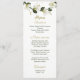 fleurs blanches et dorées avec élégant vert feuille botanique mariage menu Les détails de la parties scintillant sont simulés