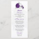 Fleurs royales romantiques violettes & blanches avec carte de menu mariage botanique feuille argent. Les détails de la parties scintillant sont simulés.