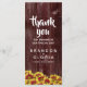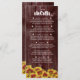 Ajoutez une touche de charme vintage à votre réception de mariage avec ce menu à thème floral, qui présente une médaille d'automne de mini-tournesols vifs à deux tons posés sur une clôture patinée. Personnalisez avec les noms des jeunes mariés, l'emplacement du lieu, la date de réception et le(s) message(s) de remerciement sur le panneau inverse. Ajoutez des éléments de menu à votre guise. Parfait pour les thèmes rustiques et mariages d'automne ! Design © W.H. Sim. Voir plus sur zazzle.com/expressionsoccasions