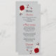 Menu fleurs rouges et blanches argent feuille mariage