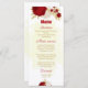 Fleurs romantiques rouge foncé et blanc avec carte de menu feuille botanique mariage. Les détails de la parties scintillant sont simulés.