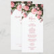 Cette carte de menu de fleurs sauvages présente des roses 3D roses et de la verdure ainsi qu'un script manuscrit élégant sur fond blanc. Personnalisez-le avec les noms des mariés au verso.