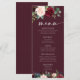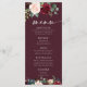 Carte de menu Boho Burgundy et Blush Mariage. Cette carte de menu est caractérisée par des roses boho bordeaux et rougis et des fleurs avec deux polices de haute classe modernes qui façonnent les tendances des événements festifs actuels et futurs.