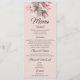 Floral, Dusty Rose Blush Mariage Menu. Couleurs roses, roses et bleues. Composition des fleurs d'automne. Ce charmant design présente de délicates fleurs roses poussiéreuses sur un arrière - plan pastel doux, parfait pour donner un ton romantique et sophistiqué à votre mariage.