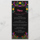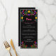 Menu animé et joli pour un mariage ou toute autre occasion spéciale. Ce thème floral mexicain présente des fleurs d'art populaire mexicaines colorées en rouge, rose, violet et jaune sur un arrière - plan noir. L'arrière de la carte est orné d'un bouquet floral fait de fleurs de fêtes identiques. Le modèle est configuré pour que vous puissiez customiser le menu avec vos noms, date de l'événement et détails du menu. Parcourez mon magasin pour rechercher des articles correspondants et coordonnés.