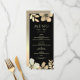 Menu moderne, élégant, chic, mariage noir avec fleurs d'or aquarelle.