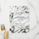 Pierre de marbre noire et blanche moderne et motif géométrique de triangle imprimé par faux d'ensemble d'or, cartes de menu de réception de mariage. Cette conception classique et sophistiquée est parfaite pour la réception de mariage chique, élégante, et à la mode. Personnalisez avec votre propre menu sur l'avant, avec vos noms et dates. Customisez alors le dos avec votre initiale de monogramme. Toute la conception d'impression de photo.