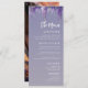 Enchant Your Invités with a Whimsical Gradient Purple Floral Photo Mariage Menu Elevez votre expérience de dîner mariage avec ce menu élégant et élégant. Le design floral violet blanc sur un doux dégradé violet arrière - plan crée une atmosphère onirique et romantique. La partie avant du menu affiche un titre "The Menu" audacieux, suivi d'une liste détaillée d'entrées, de plats, de desserts et de boissons froides. Le fond du menu présente une belle photo du couple, avec leur nom et leur date mariage. Ce menu sophistiqué et fonctionnel est le moyen parfait d'impressionner vos invités et d'améliorer l'esthétique générale de votre mariage.