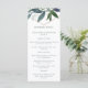 Cette carte de menu de mariage tendance et élégante présente une forme géométrique en faux or rose entourée de belles branches de verdure.