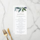 Cette carte de menu de mariage tendance et élégante présente une forme géométrique en rose gold fausse entourée de branches de verdure magnifiques.