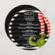Les cartes de menu rondes présentent des jambes d'elfe dans des collants rayés et des bottes vertes sur des rayures noires et blanches et des points dorés et vos coordonnées en lettrage blanc chic. Parfait pour une fête de Noël, une réception de mariage, un dîner de répétition de mariage, une fête d'anniversaire ou tout événement spécial avec un dîner assis. Personnalisez facilement avec votre menu de dîner et vos coordonnées. BEAUCOUP DE COULEURS disponibles dans notre magasin.